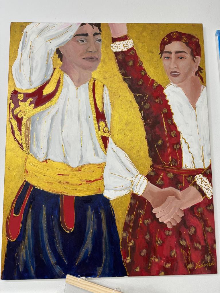 Beyond the music and the movement, there is a profound strength found in the simple act of holding on. This painting focuses on the hands—the physical bridge between two souls carrying the weight of their history together. It is a reminder that our traditions aren’t just in the steps we take, but in the quiet, unbreakable bonds we maintain along the way.