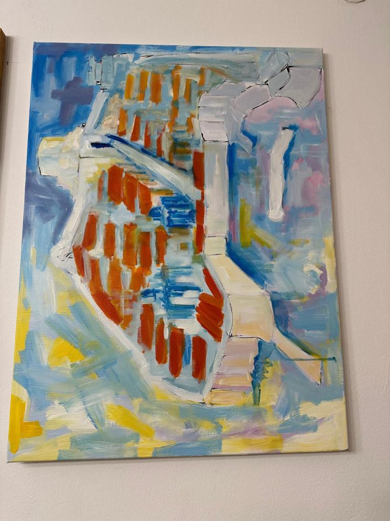 This piece is an abstract exploration of the coastal architecture that defines my childhood memories. I wanted to strip away the literal details of the houses and focus entirely on the rhythmic interaction between the sun-baked terracotta roofs and the cooling blues of the Adriatic. It represents the beautiful, organized chaos of a town built on layers of light and history. To me, it is the feeling of looking down at home and seeing a puzzle that has finally come together.